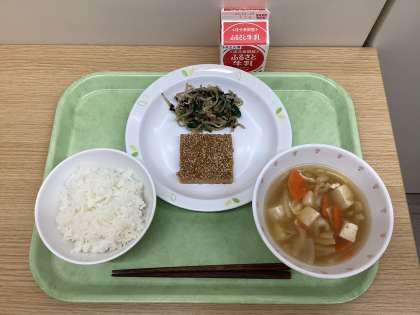 ごはん 松風焼き ほうれん草の磯和え 吉野汁 牛乳