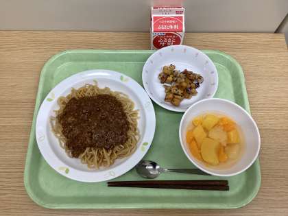 ジャージャーめん お豆かりんとう フルーツポンチ 牛乳