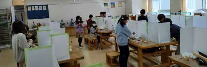 3年生は、図工でのこぎりに挑戦中です。