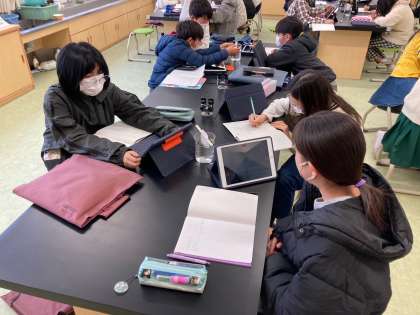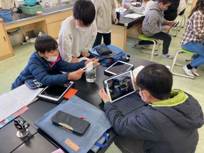 今回は、水に食塩を溶かして、溶けていく様子をじっくり観察しました。じっくり観察することで様々な発見をしていました!タブレットで動画や写真をとったり、時間をはかったり、ノートに図や言葉で記録したり…しっかり学習しています!!