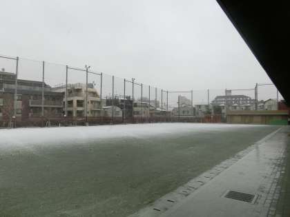 都内では久しぶりの積雪。校庭がうっすらと白くなってきました。今日の午後は新一年生保護者会です。あまり積もらないといいなあ。子どもたちは期待しているようですが。