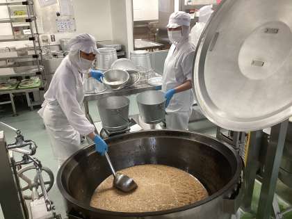 今日の給食は、絵本「大根はえらい」よりおろしスパゲッティを作りました。