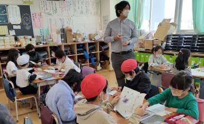 オリジナルキャラクターを描き、それの説明を英語でしています。