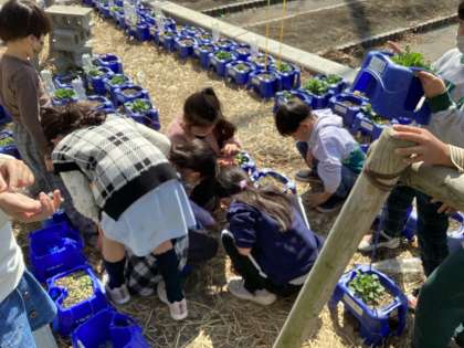 12月に植えた冬の野菜、少しずつ葉っぱが姿を現しました。また、ぽかぽか暖かい天気のなか観察しているうちに表れたダンゴムシを見付けて「もうすぐ春だなあ」という発見がありました。