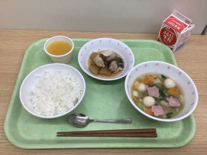 ごはん ぶり大根 白玉スープ みかんゼリー 牛乳