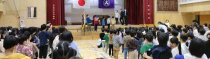 月曜日は久しぶりに全校児童が集まって朝会を行いました。