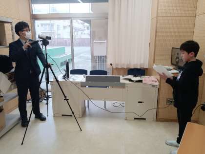 令和4年度修了式。外はあいにくの天気。校内テレビ放送で行いました。代表児童のあいさつ。最後に相応しく1年間の積み重ねを感じさせる発表でした。テレビを見ていたみんなからの大きな拍手が校舎中に響いていました。