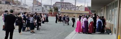 卒業式後もお世話になった先生たちと写真を撮っています!