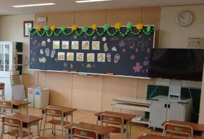入学式「3」でもお伝えした頼もしい6年生ですが、実は入学式の前の日に登校し、教室を整えたり、飾り付けたりしてくれました。