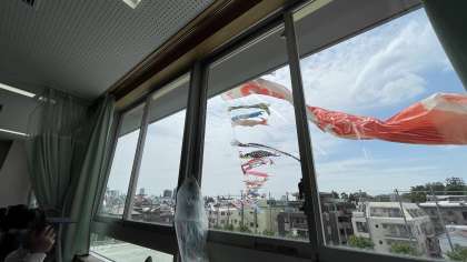 気持ちよさそうに泳ぎ始めたこいのぼりを見て子供たちから、