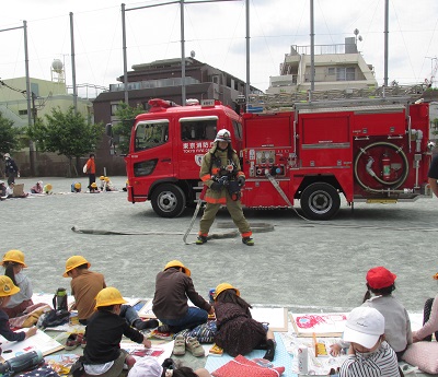 4月25日(火)に「はたらく消防写生会」が行われました。大きな消防車が学校に到着すると、子どもたちは歓声をあげて喜んでいました。図工の先生から絵を描くときのポイントを聞いて、画用紙いっぱいに大きく消防車や消防士さんを描くことができました。