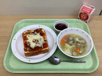 ピザトースト ポトフ ぶどうゼリー 牛乳