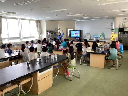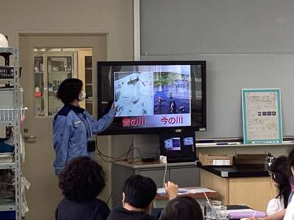 講師の方に来ていただき、私たちが使用した水がどのようにしてきれいになるのかを学びました。
