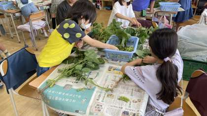 今日の1時間目は、せたがやそだちの枝豆のさやもぎを体験しました。