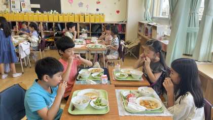給食に携わる全ての方と自然の恵みに感謝をして「ごちそうさま」をした3年生の子供達でした。