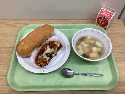 パインパン ナスのグラタン 冬瓜スープ 牛乳