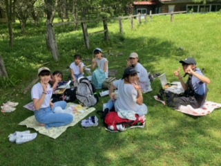 お待ちかねのお弁当です。ここでも、トンボや蜘蛛など、虫達と一緒にご飯です。びっくりして食べながら、逃げていた子どももいましたが、これもきっとよい思い出になるはず。