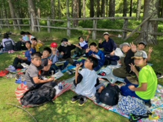 あっという間に食べ終わり、「唐揚げちょうだい。」とおねだりする人も。頑張って歩いた後だから、いつも以上にお腹もすきますよね。