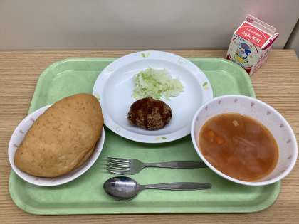 セサミパン コロッケ キャベツ ミネストローネ 牛乳