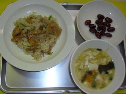 献立名 たけのこごはん 牛乳 かきたま汁 煮豆