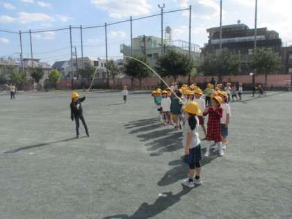 学芸会が終わり、次は運動会に向けて体力づくり。校庭で大繩にチャレンジし、縄をよく見て、タイミングよく入ることができました。