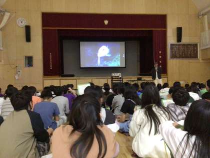 水中写真家の方をお招きして、海の豊かで美しい様子や、環境問題、仕事に対する考え方などたくさんのお話を聞かせていただきました。