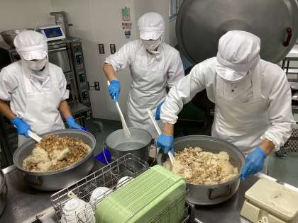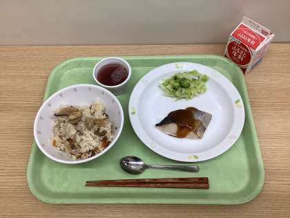とりめし さごしのみそだれかけ 野菜のひと塩 ぶどうゼリー 牛乳
