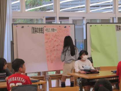 6年生は総合的な学習の時間に「若林の未来」と題して、若林の町がどんな町に発展していけばよいか、そして自分たちにできることは何かについて話合いをしています。話合いには、地域の方や保護者、区の職員の方々も加わり、様々な視点から若林の町の未来を考えました。今後、具体的な取組を皆で決めて実践していく予定です。