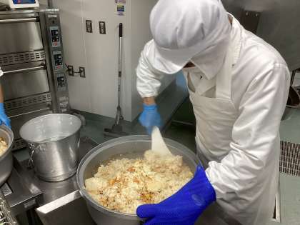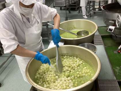 十三夜は、その年に獲れた栗や豆をお供えしてお月見をすることから、栗名月や豆名月とも呼ばれます。今日の給食は、栗の入った秋の香りごはんを炊きました。月見団子は、枝豆ですんだを作りました。