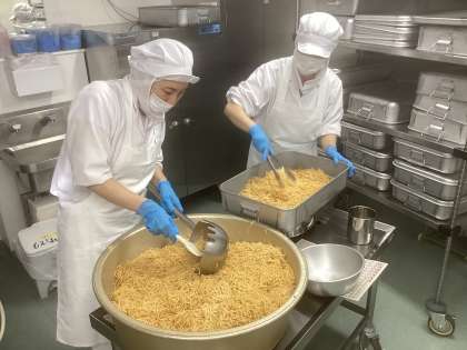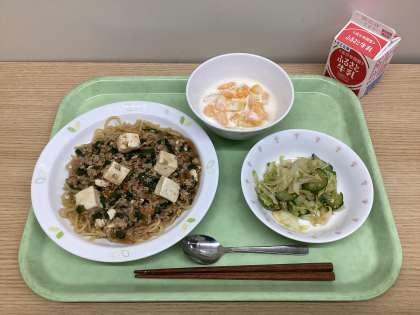 麻婆豆腐焼きそば 野菜の中華風味 フルーツヨーグルト 牛乳