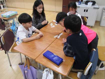 2年生は、算数「かけ算」で九九の学習に取り組んでいます。声にだして九九を言いながら一生懸命覚えています。九九のカード取りでも、答えと合う九九の式を間違えないように選んでいます。