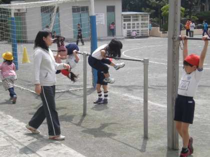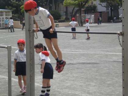 鉄棒が人気のようで、たくさんの子が逆上がりにチャレンジしていました。