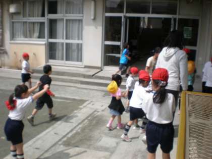 1年生の子達がお休み時間に元気よく外遊びをしていました。