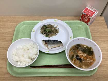 ごはん さばの塩焼き 磯和え 大根のみそ汁 牛乳