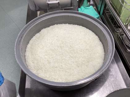 今日のお米は、南魚沼産コシヒカリの有機米です。有機農作物の活用促進としてお米の購入代金の一部を世田谷区が補助し、給食で有機米を提供する取り組みをしています。