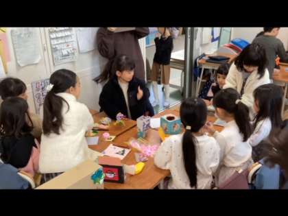 これまで生活科で学んできたおもちゃ作りの活動を活かして、子ども達が自分たちでお店を考えて作りました。各クラス、工夫を凝らしたお店を開き、一年生に喜んでもらうことができました。