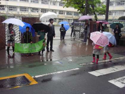 最終日もあいにくの天気でしたが、元気に地域や保護者の方々と一緒にあいさつをさせていただきました。