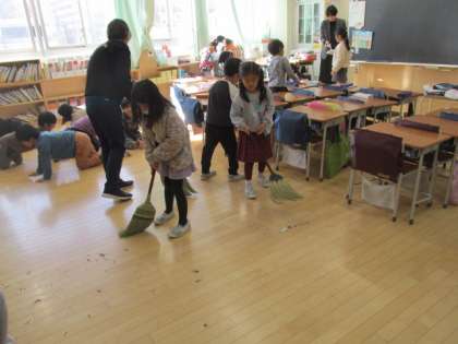 12月22日(金)3校時に全校で大掃除を行いました。机や椅子の脚に付いたゴミを取ったり、廊下の掲示板の埃を拭ったり、どの子も一生懸命に掃除に取り組んでいました。「きれいになると気持ちいいね」子どもたちもきれいになった教室や廊下を見て、嬉しそうに言葉を交わしていました。いよいよ年末。お家でも進んでお手伝いができるとよいです。