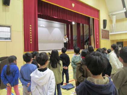 新しい年を迎え、1月9日(火)今日から3学期がスタートしました。始業式では、校長先生より3学期の過ごし方や「笑う門には福来る」の諺から、今学期も皆で協力して笑顔あふれる毎日にしていきましょうとお話がありました。そして、最後に大谷翔平選手から贈られたグローブの紹介もありました。3年生と6年生の代表児童は、3学期の抱負を述べました。短い3学期ですが、努力を重ねて充実した日々を送ってほしいです。