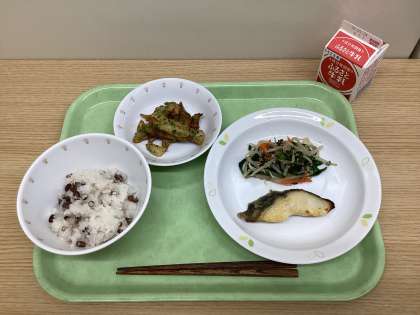 あずきごはん 銀だらの西京焼き ほうれん草のごま和え のりポテト 牛乳