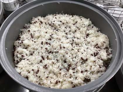 今日は小正月です。小正月にはあずき粥を食べて1年の邪気を払う風習があります。給食では、あずき粥の代わりに、あずきごはんを炊きました。