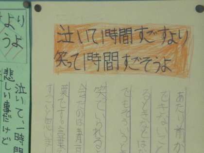 6年生の教室の前には、その時に心に残った言葉を書き出した紙が、