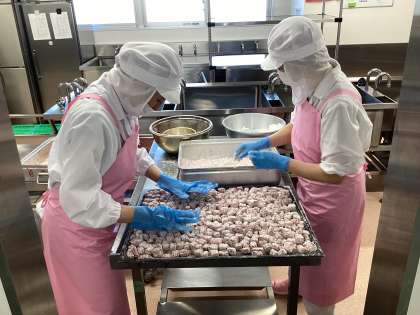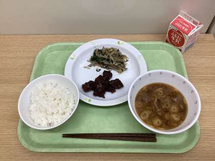 ごはん くじらの甘辛揚げ ほうれん草の磯和え なめこ汁 牛乳