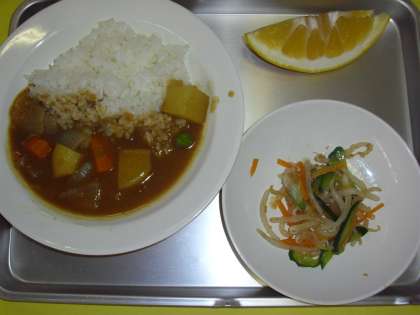 献立名 カレーライス 牛乳 こんにゃくサラダ 美生柑