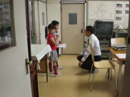 日直さんがクラスを代表して、校長先生に出欠の報告に行きます。