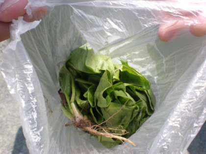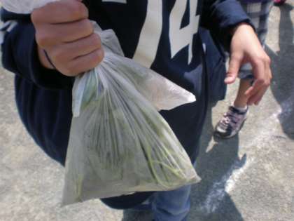 学校菜園で育てたホウレンソウを5年生が収穫しました。
