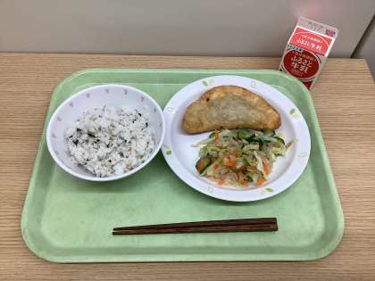 わかめごはんとジャンボぎょうざは給食アンケートで上位だったメニューです。