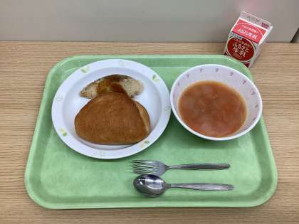 セサミパン 魚のバーベキューソース ミネストローネ 牛乳