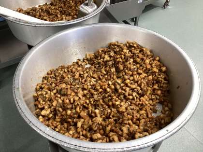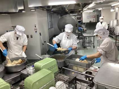 給食では、穴子のちらし寿司と桃のゼリーを作りました。