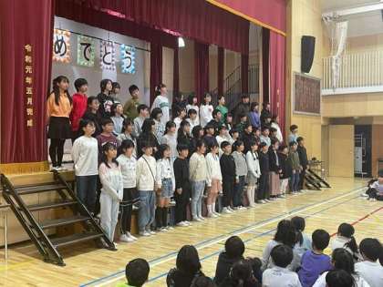 これまでお世話になった6年生へ、各学年から感謝の気持ちを込めていろいろな出し物を行いました。5年生は6年生から、これからの若林小を最高学年として引っ張っていってほしいという想いと伝統を引き継ぎました。